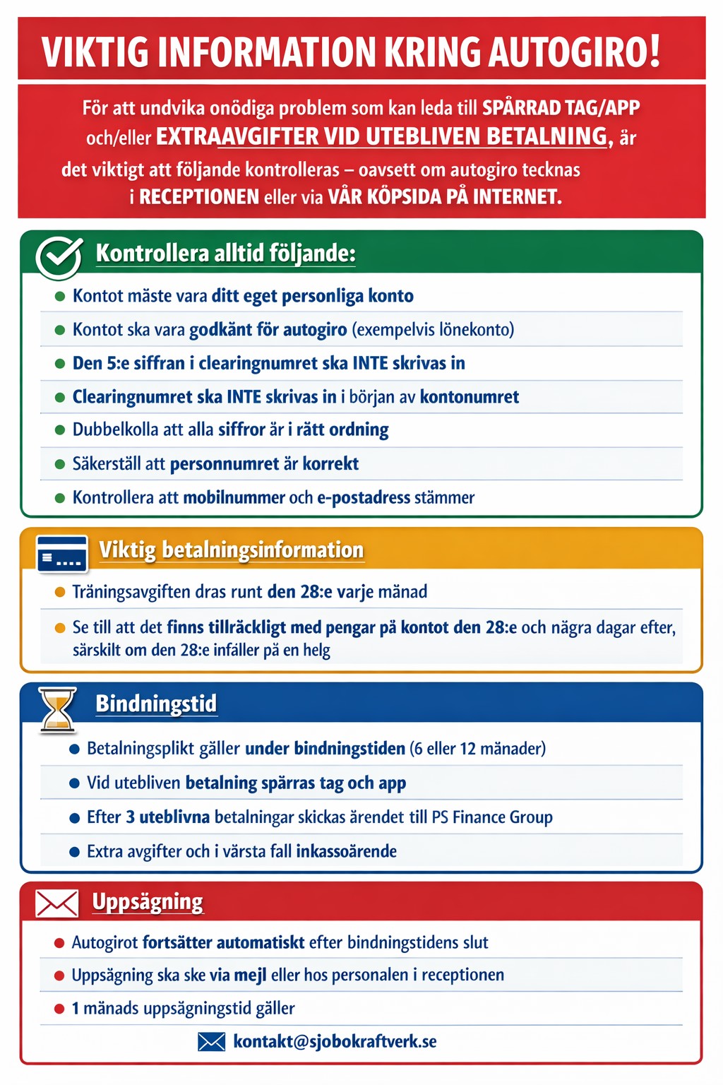 Under perioden december t.om. början på mars-2026 kommer receptionen att vara obemannad onsdag förmiddag. Även gruppträningen denna tiden kommer att vara pausad under samma period.